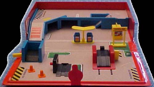 Some of these were among the first playsets for the Micro Machines cars. They folded up to make them portable. The velcro latches that hold them close are seldom found intact on these as they usually ripped off of the case or the velcro is gone.