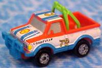 Rollin' Raceways were advertised as hand-held racing action. Just tilt the playset in the direction you wanted to go and watch the car go. This package came a Micro Machines Datsun Pickup.