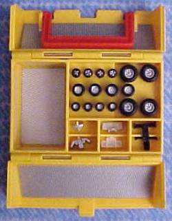 This playset came with parts to customize the two cars included and a tool box shaped box to store it all in. You could easily add larger tires, big engines, cool spoilers, or custom grills.