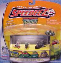 With the resparked interest in the Teenage Mutant Ninja Turtles, Playmates came out with a whole line of TMNT toys, including 3 different packs of Speedeez micros. PLEASE NOTE: THESE ARE NOT RARE! Many people may see these listed on eBay as being rare, but in fact they were so overproduced that Target stores had to mark them down to just $.99 in order to get rid of them! Smaller stores, like Rite-Aid drug stores, may still have them on the shelves. ****