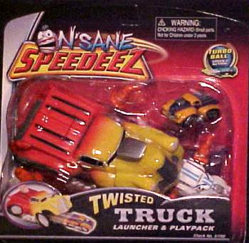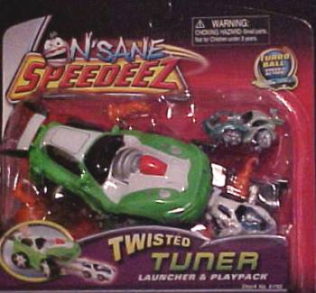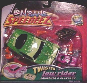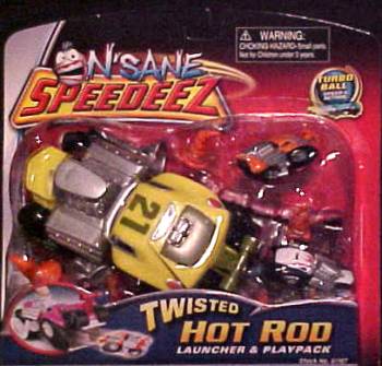 Speedeez came up with the N'Sane series in 2005. One of the new subseries was the 'Twisted' line that featured really distorted micros. In all, there was four different sets of launchers with matching cars. The cars had no working wheels and rolled on the ball bearing. **